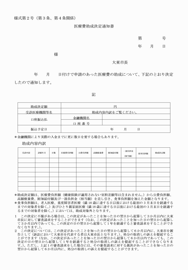 3 市長は、前項の申請があったときは、その内容を審査した上で、医療費の助成の可否を決定し、その旨を医療費助成決定通知書により当該申請を行った者に通知するものとする。