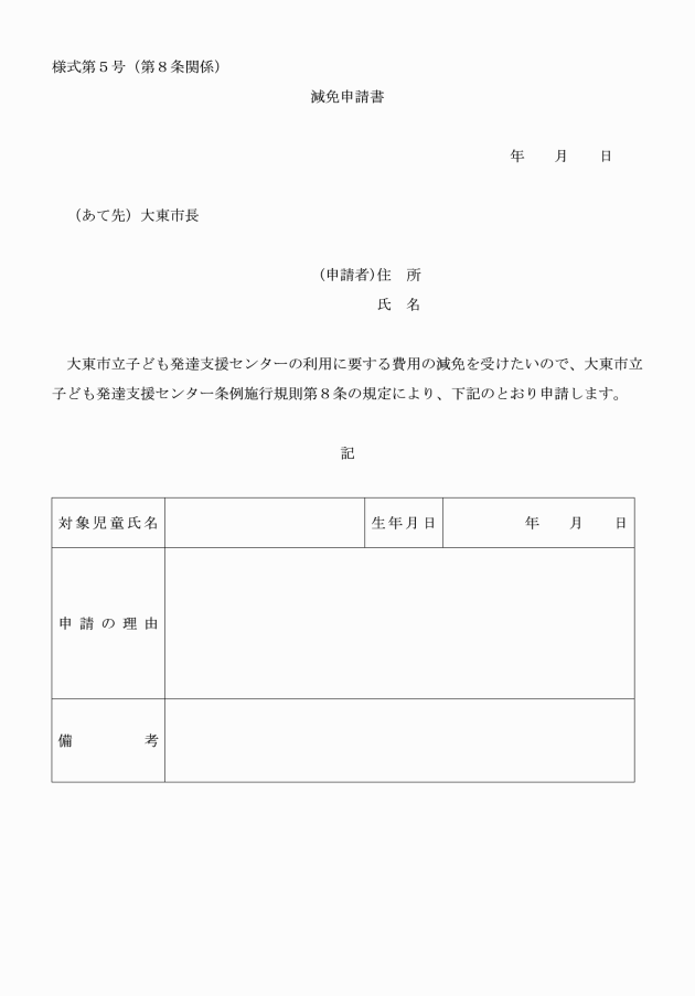 ○大東市立子ども発達支援センター条例施行規則