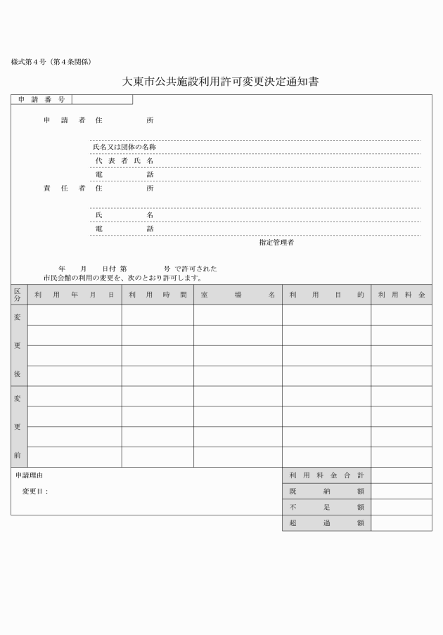 3 旧規則の規定により作成した用紙(大東市公共施設予約システムによって作成した用紙を除く。)は、新規則の規定に基づき作成したものとみなし、当分の間、所要の調整をして利用することができる。
