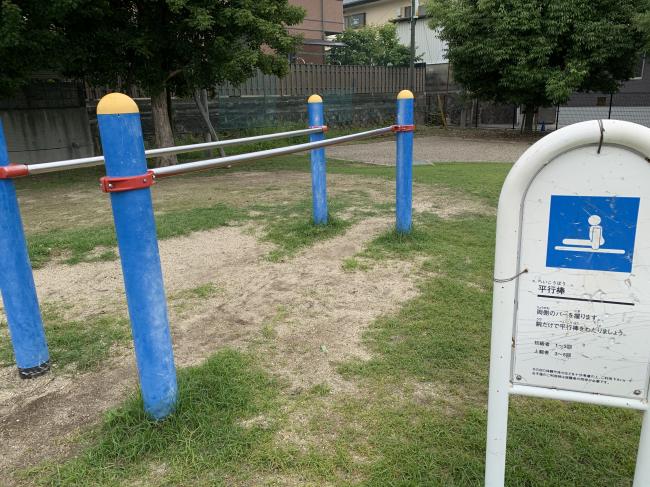 バーにつかまり、足を水平に上げることで、腕や足の筋力トレーニングができます。