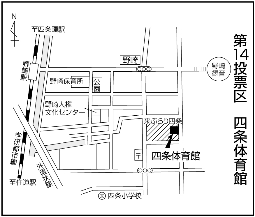 | 14 | 四条体育館 | 野崎1~4丁目 | 野崎3丁目6番1号 |