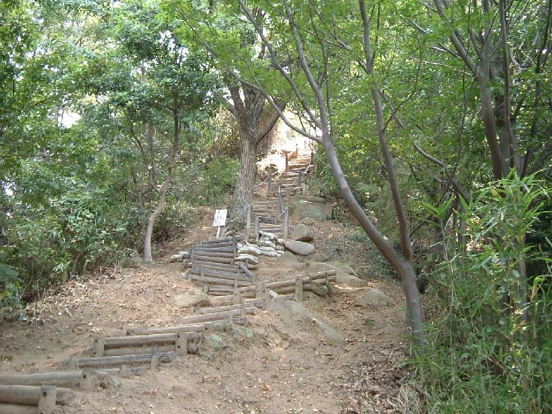 四條畷神社方面に行く時に通るところで写真のように不規則で急な階段が続いています。 手すりも一部ありますが足元には十分な注意が必要です。
